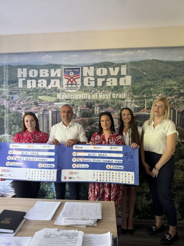 Načelnik Opštine Novi Grad Miroslav Drljača i njegov zamjenik Bojan Lukač uručili su čekove mladima, te su pohvalili saradnju Opštine Novi Grad i Fondacije Mozaik, istaknuvši da putem projekata i mikrobiznisa mladi odlučuju u kom pravcu Novi Grad treba da se razvija.