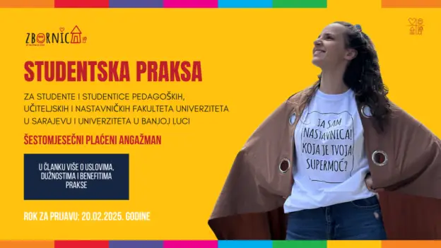 Dragi studenti i drage studentice pedagoških, učiteljskih i nastavničkih fakulteta Univerziteta u Sarajevu i Univerziteta u Banjoj Luci, imamo priliku za vas!