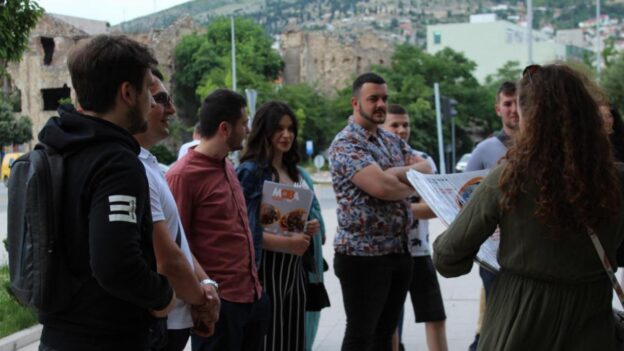 Nakon što smo završili početnu fazu mentorisanja mikrobiznisa, sastali smo se na Španskom trgu sa članovima novoosnovane Omladinske banke Mostar i zajedno smo krenuli u promociju prvog Poziva za društveno korisne projekte i mikrobiznise Omladinske banke Mostar.