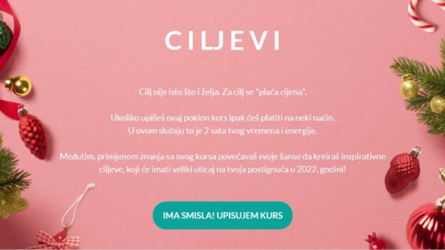 Decembar je pravi period da želje, planove i ciljeve pripremimo za realizaciju! Pripremili smo stoga za Tebe pravu malu riznicu znanja, alata, primjera i konkretnih koraka o tome kako da kreiraš inspirativne ciljeve za 2022. godinu. i realizuješ ih.