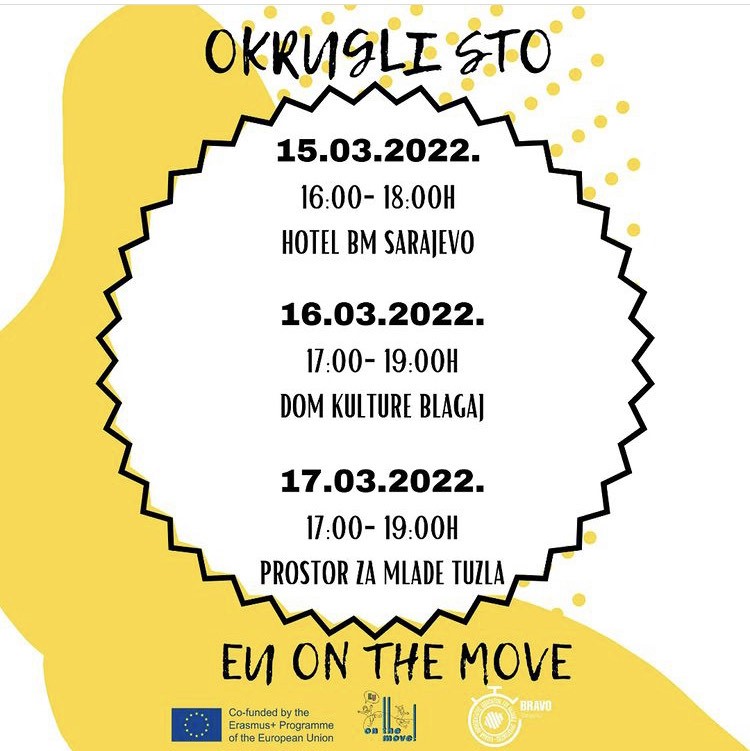 U sklopu Erasmus+ projekta ”Eu on the Move”, finansiranog od strane Evropske komisije, BRAVO otvara novi poziv za Okrugli sto koji će se održati na više lokacija u Bosni i Hercegovini.