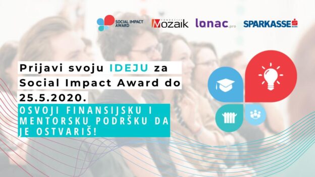 Prijavi se za Social Impact Award, osiguraj finansijsku i mentorsku podršku za svoju ideju i besplatno učešće na Međunarodnom SIA samitu u Pragu gdje ćeš se družiti sa društvenim preduzetnicama i preduzetnicima iz 15 država. Prijave su otvorene do 25.5.2020. godine do 23:59h.