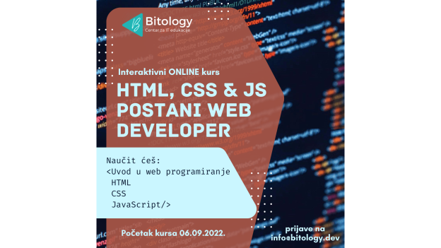 Prijave na kurs su otvorene do 03.10.2022., a prijaviti se možete na info@bitology.dev ili putem ONLINE PRIJAVE.