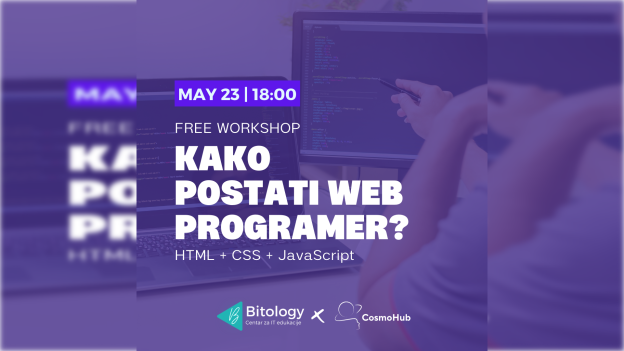 Centar za IT edukacije Bitology & CosmoHub Coworking, Event & Startup space organizuje besplatan workshop “Kako postati web programer“, na kojem ćemo sve polaznike upoznati sa elementima, načinom rada i vještinama potrebnim za izradu web stranica, bez obzira na nivo iskustva polaznika.