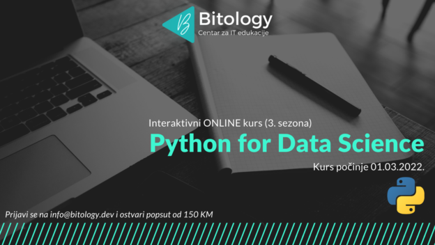 Data Science (nauka o podacima) unosi revolucionarne promjene i poboljšanja u svakom segmentu današnje svakodnevnice, od modernog poslovanja kompanije, do načina života digitalnog građanina. Na trećoj sezoni kursa „Python for Data Science“ biti će vam pružena mogućnost da savladate i primijenite Python programski jezik u Data Science-u. Kurs je predviđen za osobe sa osnovnim znanjem o Python programskom jeziku, ali i za početnike koji žele da se upuste u avanturu zvanu Data Science.