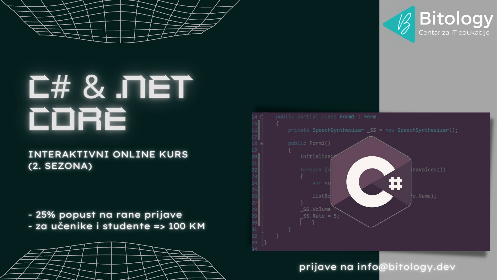 Interaktivni ONLINE kurs “C# & .NET Core – Postani Backend Developer”