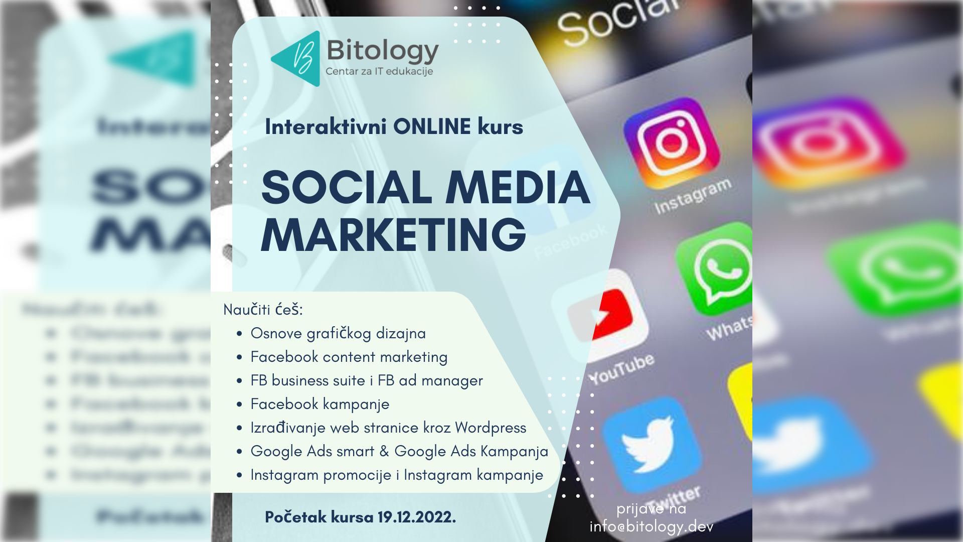 Da li razmišljaš o karijeri Social Media Managera? Imaš mali biznis i ne želiš plaćati agenciju da ti vodi društvene mreže? Da li si zainteresiran za učenje načina rada društvenih mreža? Onda si na pravom mjestu…