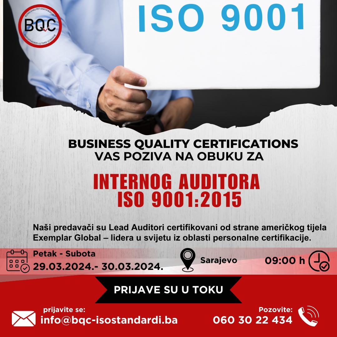 📅 𝗞𝗿𝗲𝗻𝗶𝘁𝗲 𝗻𝗮 𝘀𝘃𝗼𝗷 𝗽𝘂𝘁 𝗸𝗮 𝘂𝘀𝗽j𝗲𝗵𝘂 𝟮𝟵. 𝗺𝗮𝗿𝘁𝗮 𝟮𝟬𝟮𝟰. 𝘂 𝟵:𝟬𝟬 𝗵! Dodajte ovaj datum u svoj kalendar i pridružite se obuci koja će vas osposobiti da postanete 𝐢𝐧𝐭𝐞𝐫𝐧𝐢 𝐚𝐮𝐝𝐢𝐭𝐨𝐫 𝐬𝐢𝐬𝐭𝐞𝐦𝐚 𝐮𝐩𝐫𝐚𝐯𝐥𝐣𝐚𝐧𝐣𝐚 𝐤𝐯𝐚𝐥𝐢𝐭𝐞𝐭𝐨𝐦 𝐩𝐫𝐞𝐦𝐚 𝐈𝐒𝐎 𝟗𝟎𝟎𝟏:𝟐𝟎𝟏𝟓 𝐬𝐭𝐚𝐧𝐝𝐚𝐫𝐝𝐮.