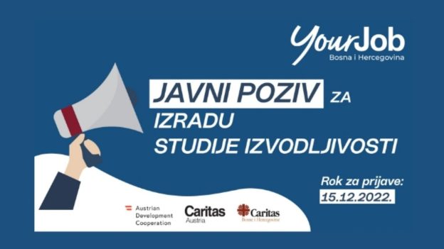 Caritas Bosne i Hercegovine poziva zainteresirane kandidate i kandidatkinje za prijavu na poziv za izradu studije izvodljivosti za potrebe projekta „YourJob 2” – Regionalni projekt stvaranja mogućnosti zapošljavanja mladih na Balkanu.