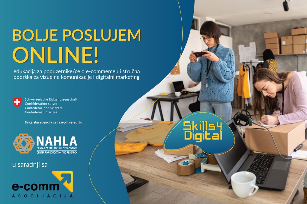 CEI Nahla u okviru projekta Skills4Digital organizira besplatan program “Bolje poslujem online!” o e-commmercu za 15 poduzetnica i poduzetnika sa područja Kantona Sarajevo, Tuzlanskog kantona i Unsko-Sanskog kantona.