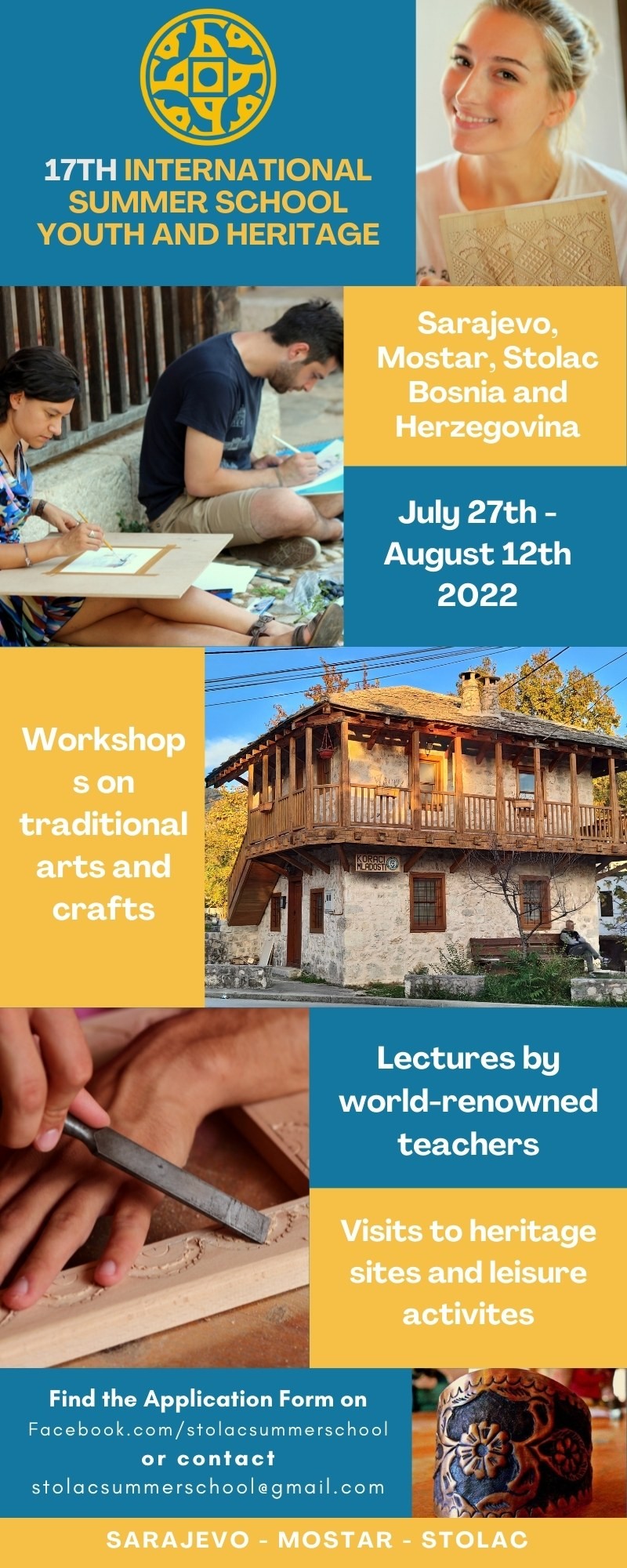 Internacionalna ljetna škola Mladi i Naslijeđe poziva mlade ljude od 20 do 35 godina, studente na završnom nivou osnovnih, magistarskih ili doktorskih programa koji su direktno ili indirektno povezani sa kulturnim naslijeđem, sa dobrim poznavanjem engleskog jezika, da apliciraju za učešće u Školi.