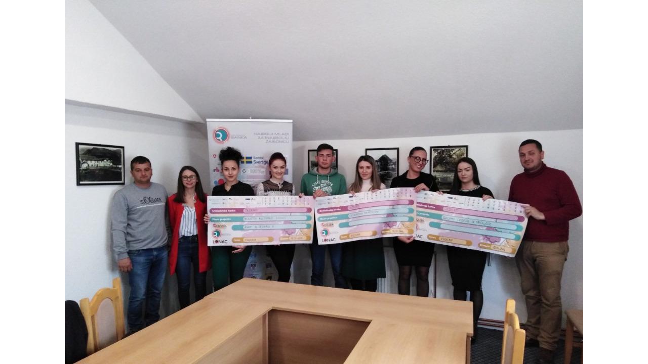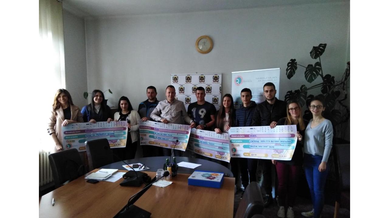 Ceremonija potpisivanja ugovora i dodjeljivanje čekova za mlade koji su aplicirali na projekte u Bosanskom Petrovcu kao i sa jednom mladim preduzetnikom.