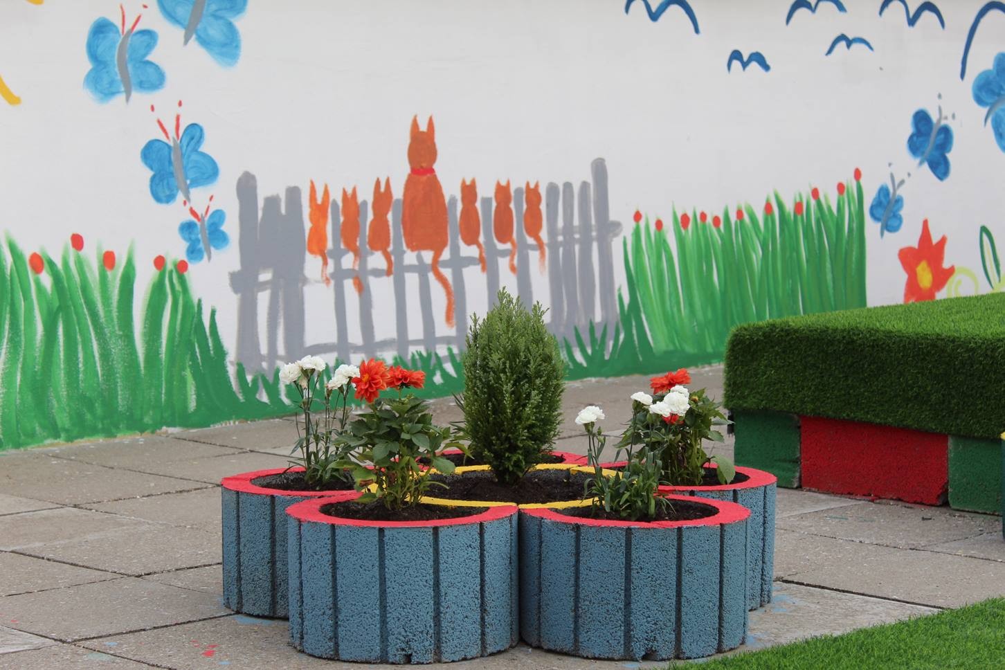 Studentice i srednjoškolke su prostor ispunile raznim crtežima, posebno se ističe i japanska trešnja, a tu su i drugi motivi prirode. Također tu su i razne kombinacije žute i zelene boje, a neizostavni detalj je cvijeće. Lounge je izrađen od europaleta kojeg su djevojke kreirale kroz edukativne i zabavne radionice. Pored europaleta, kutak lounga obogaćen je dekorativnim materijalima.