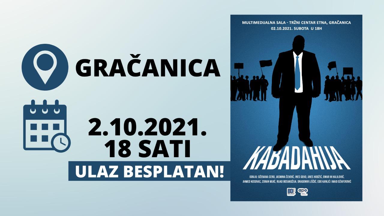 U subotu, 2. oktobra, u Gračanicu stiže „Kabadahija”! Grupa mladih polaznika_ca Akademije političke odgovornosti iz svih dijelova BiH osmislili su amatersku predstavu koju će u 18h održati u Multimedijalnoj sali Tržnog centra ETNA u Gračanici