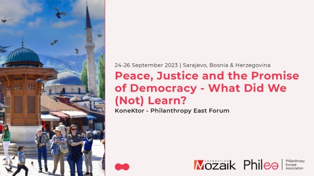 The 26th edition of KoneKtor – Philanthropy East Forum, formerly known as Grantmakers East Forum, “Peace, Justice, and the Promise of Democracy – What did we (not) learn?”, will be hosted by Mozaik Foundation in Sarajevo, Bosnia and Herzegovina, on the 24th-26th of September 2023.