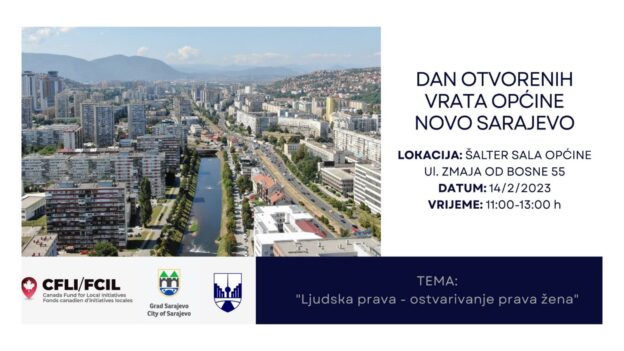 Grad Sarajevo, Općina Novo Sarajevo i Kanadski fond za lokalne inicijative pozivaju te na Dan otvorenih vrata Općine Novo Sarajevo, koji će se održati u utorak 14. februara 2023. godine, u prostorijama Šalter sale Općine Novo Sarajevo.