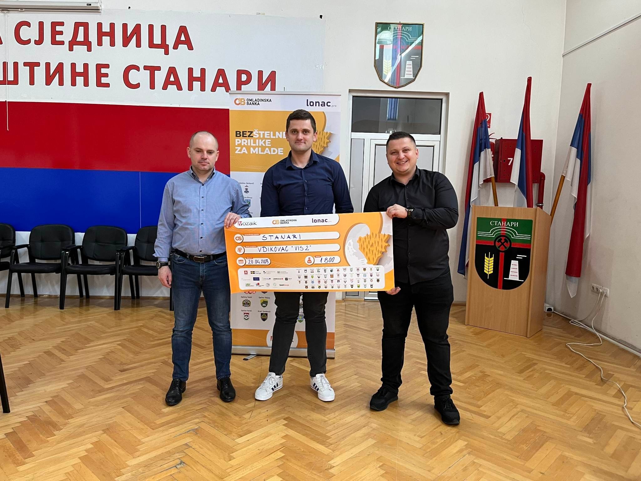 Dana 27.04.2022. godine, u sali Skupštine opštine Stanari, članovi odbora Omladinske banka Stanari i predstavnici Fondacije Mozaik, Željko Pauković i Sanja Kojić , te prestavnik opštine Stanari, predsjednik Skupštine opštine Stanari, Denis Stevanović, održali su ceremoniju povodom završenih aktivnosti Omladinske banke Stanari iz Prvog poziva Omladinske banke Stanari za pisanje projekata i mikrobiznisa.