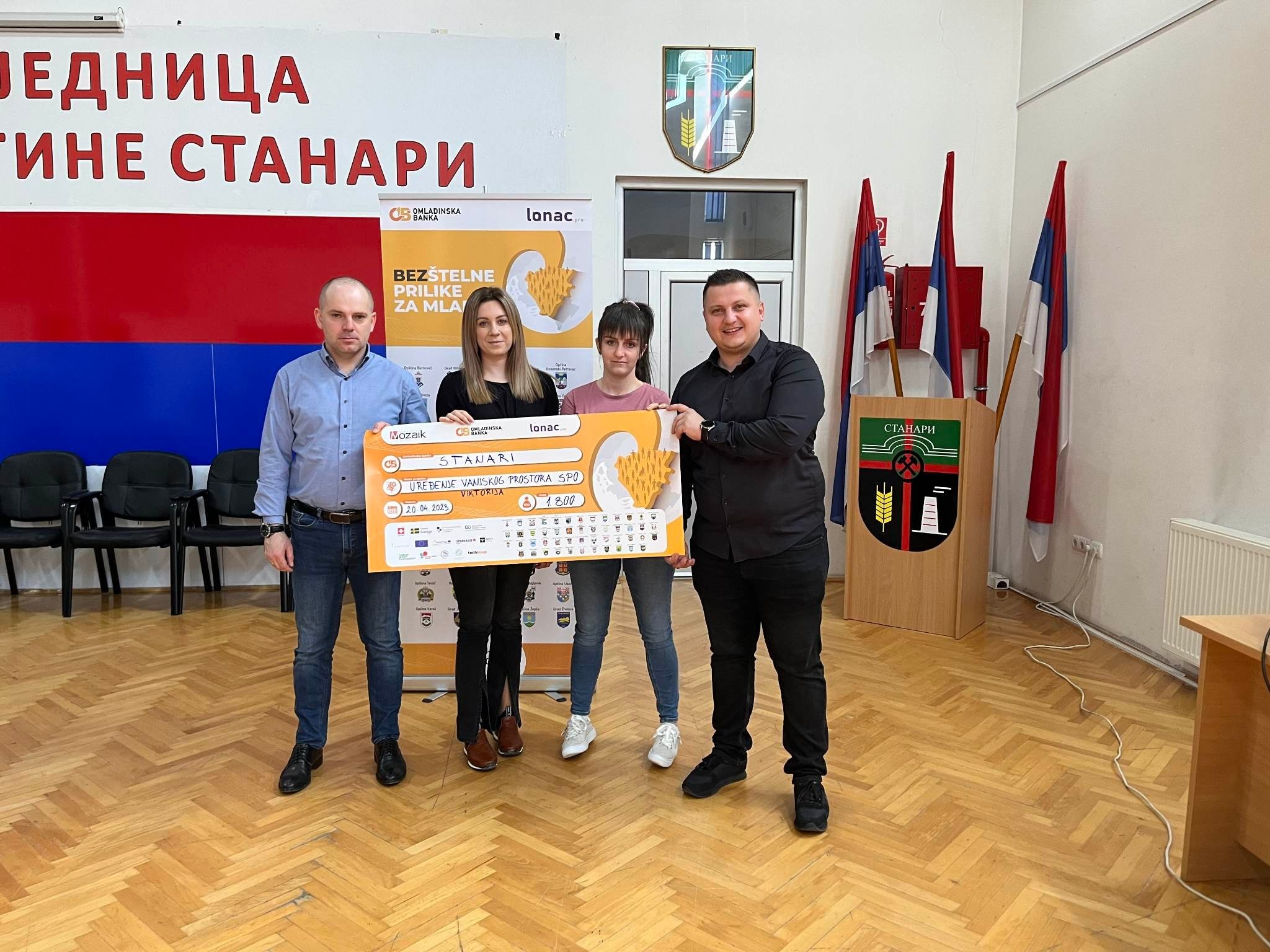 Na ceremoniji ispred Opštine Stanari prisustvovali su Zamjenik načelnika Miloš Garić, Predsjednik Skupštine Opštine – Stevanović Denis, te članovi i članice Odbora na čelu sa koordinatorom Igorom Bajićem. Fondaciju Mozaik predstavljali su Direktor programa Omladinske banke Zeljko Paukovic i Asistentica programa Helena Kreća.