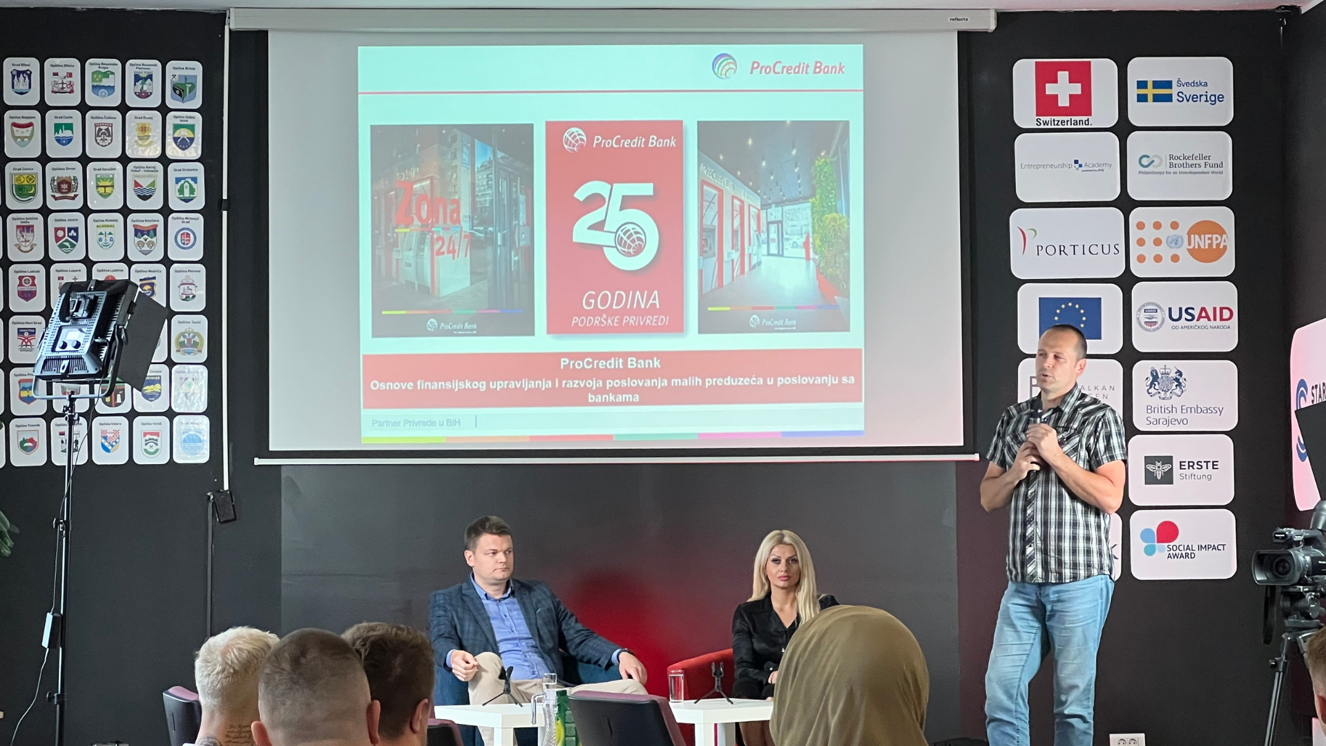 U petak, 12.05.2023. godine, smo u prostorijama Startap studio Sarajevo imali edukaciju na temu finansiranja i održivog poslovanja mikrobiznisa od strane menadžmenta ProCredit banke.