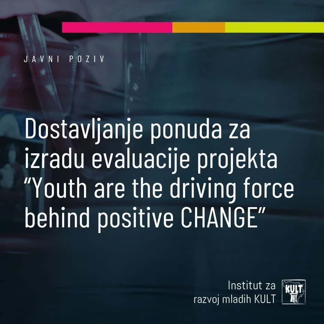Institut za razvoj mladih KULT raspisuje javni poziv za prijavu aplikanata zainteresiranih za srednjoročnu evaluaciju programa: “Youth are the driving force behind positive CHANGE” / Mladi su pokretačka snaga pozitivne promjene.