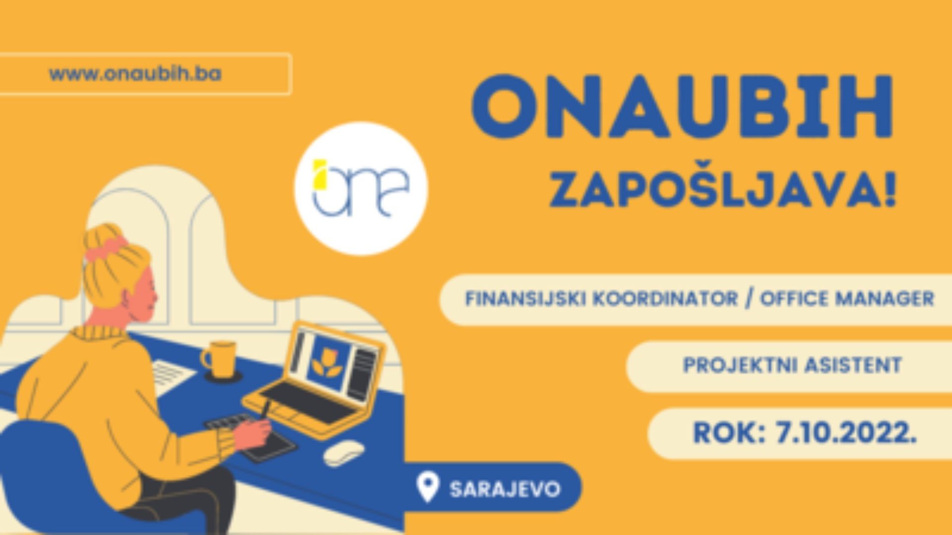 Omladinska novinska asocijacija u Bosni i Hercegovini (ONAuBiH), na osnovu ukazane potrebe, objavljuje konkurs za više radnih pozicija: Finansijski koordinator ili koordinatorica/Office manager i Projektni asistent ili asistentica