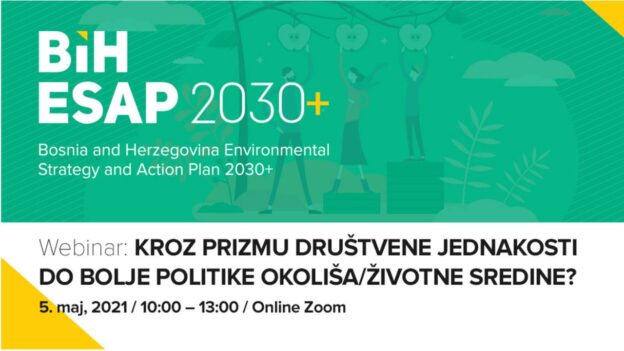 Webinar “Kroz prizmu društvene jednakosti do bolje politike zaštite okoliša/životne sredine?” će se održati 5.5.2021. godine, od 10:00 do 13:00 sati.