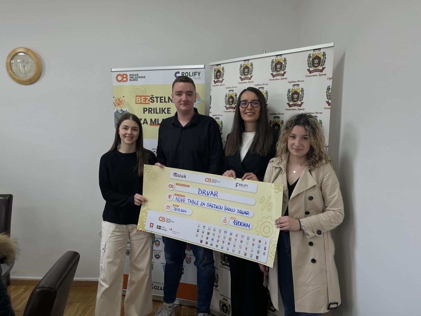 Omladinska banka Drvar je nakon svog prvog poziva bogatija za 12 novih projekata u vrijednosti od 35.800 KM, od čega je 21.330 KM odobreno od Omladinske banke Drvar, a 14.470 KM obezbijeđeno od iz zajednice u vidu robe, novca ili usluga. Ceremonija potpisivanja ugovora u opštini Drvar održana je 28.03.2024. godine u 9:00 časova. Projekti koje realizuju mladi ove opštine su: