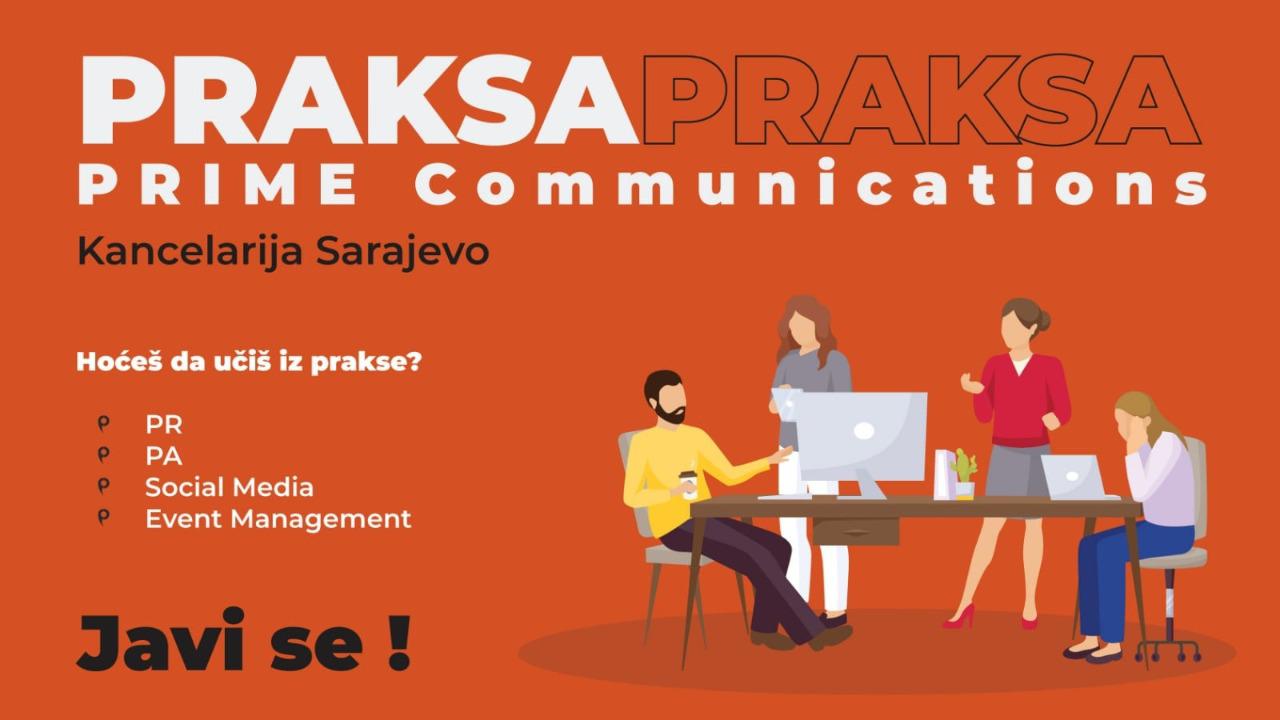 Prilika za praksu u domaćoj PR agenciji PRIME Communications.