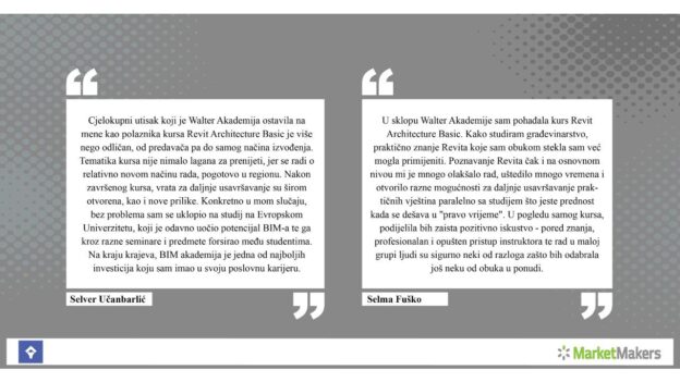 Pročitajte utiske i iskustva polaznika Walter Academy koja nudi interaktivnu platformu za obrazovanje AEC inžinjera i svih onih koji rade na području arhitekture, građevine, mašinstva itd. Akademija na ovaj način teži probuditi svijest mladih o pozitivnim promjenama koje inovacije i modernizacija mogu donijeti pojedinicima, ali i industriji.