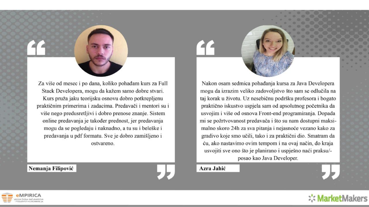 Pročitajte utiske i iskustva polaznika Visoke škole računarstva i poslovnih komunikacija eMPIRICA koja nudi brojne online programe cjeloživotnog IT obrazovanja.