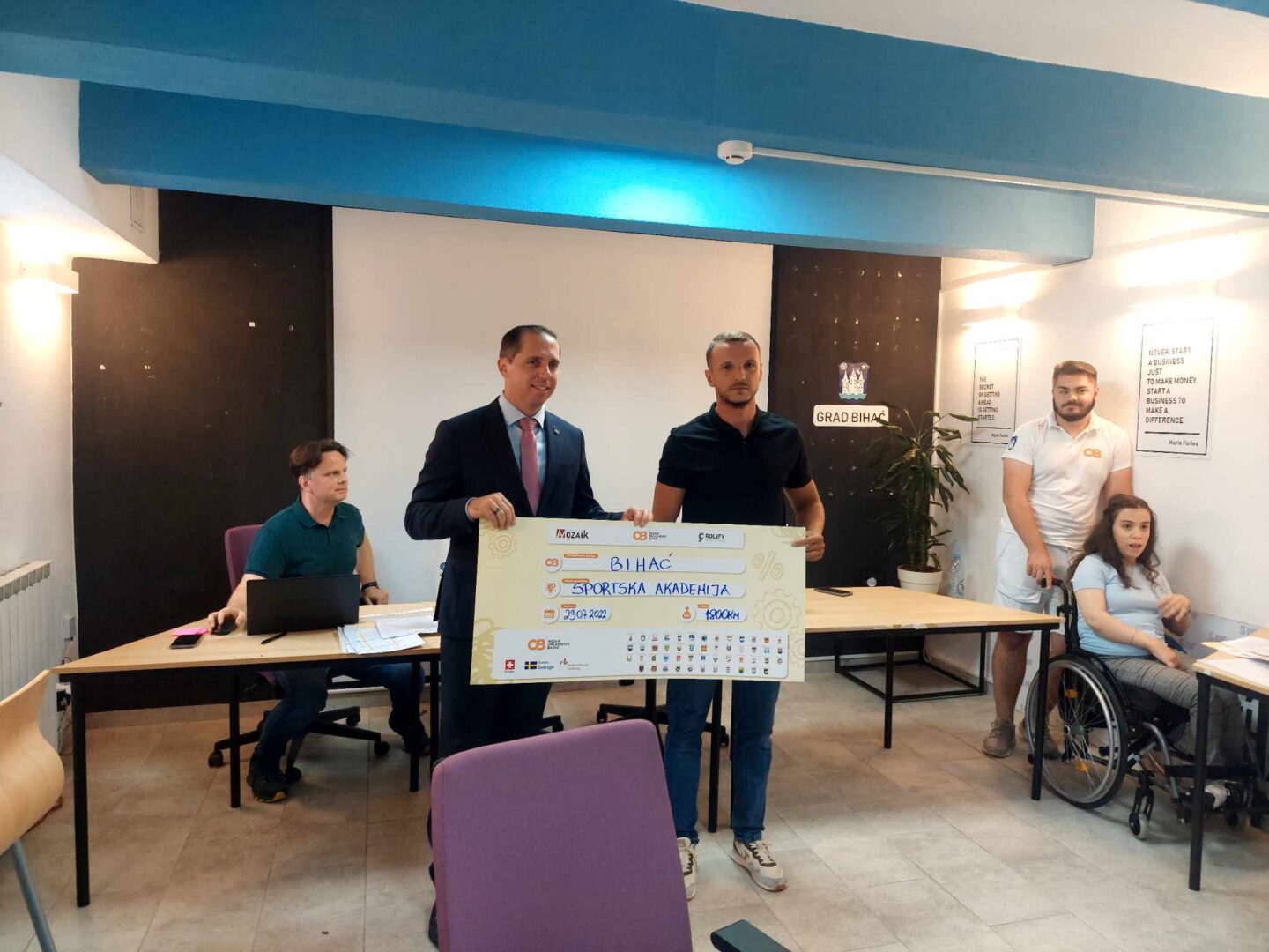 Ceremonija potpisivanja ugovora bila je događaj od velikog značaja za našu zajednicu. Ceremonija je 23.7.2024. godine okupila predstavnike Gradske uprave Bihać, Fondacije Mozaik, predstavnike Odbora omladinske banke Bihać kao i pojedince koji su kao grupe realizovali projekte u našoj zajednici.