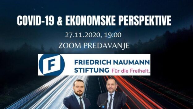 Friedrich Naumann Fondacija zajedno sa Udruženjem građana Multi organizuje predavanja 27.11.2020 u 19h na temu Covid-19 & Ekonomske perspektive. Govornici na webinaru su: Admir Čavalić i Damir Bećirović, koji su u aprilu zajedno sa Farukom Hadžić izdali izvještaj “COVID-19, ekonomske posljedice za Bosnu i Hercegovinu, mjere i rješenja” precizno objašnjavajući posljedice pandemije na našu ekonomiju te prijedlozi konkretnih mjera za izlazak iz krize. Tokom ove sesije razgovarati ćemo perspektivama domaće ekonomije a drugi dio ove sesije sa Farukom Hadžić biti će održan u ponedjeljak. 30.11.2020 u 19h.