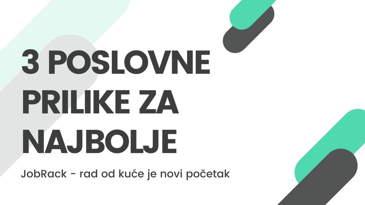 Danas objavljujem tri nova posla za vas, tri različite oblasti. Na JobRack-u uvijek možete naći nešto za sebe.