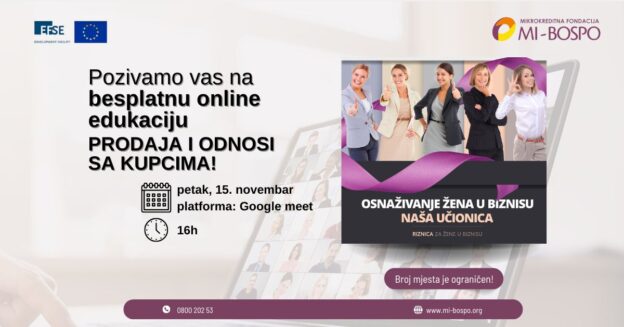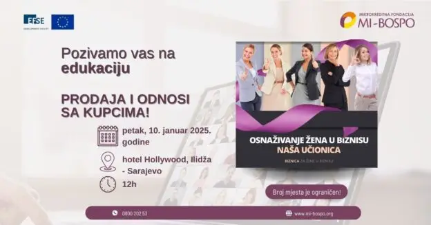 MI-BOSPO poziva žene u biznisu, na edukaciju koja će vam pomoći da unaprijedite prodajne vještine i izgradite snažnije odnose s vašim kupcima!