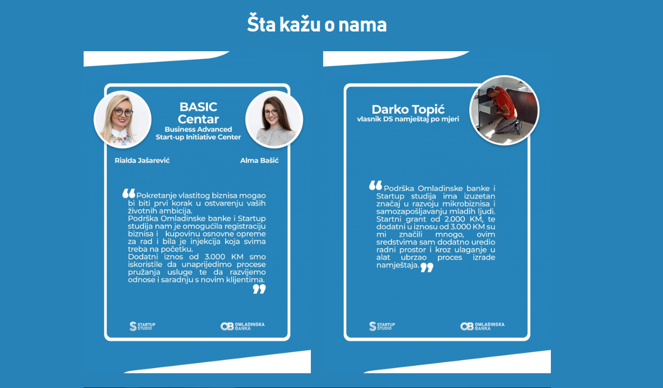 Za sve ostale informacije možeš pisati na mail robert@mozaik.ba – voditelj Startup studija Bihać.