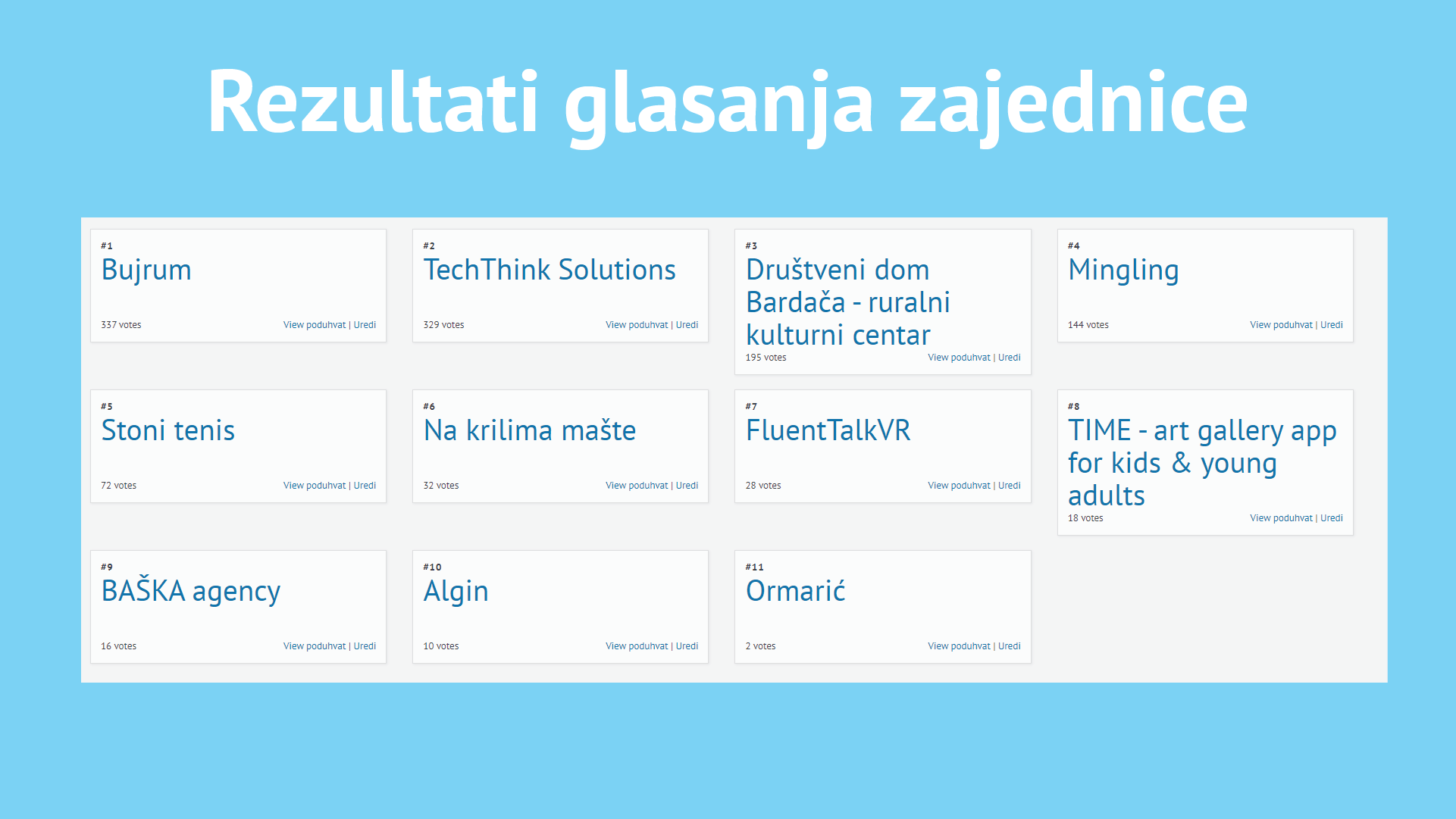 Glasanje će se završiti suta, 3.10. do 13h, dajući ti priliku da podržiš projekte koji su te najviše inspirirali.
