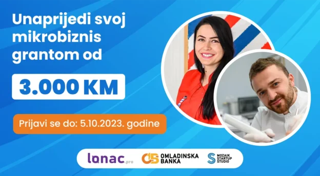 Nedavno je (05.10.) zatvoren poziv “Grant od 3.000 KM da unaprijediš svoj mikrobiznis!”, koji je imao za cilj da pruži dodatnu podršku mikrobiznisima podržanim u okviru programa Omladinska banka, za koje vjerujemo da mogu napraviti još bolje rezultate. Na ovaj način želimo da pružimo podsticaj mladim preduzetnicima i preduzetnicama na njihovom putu do uspjeha i unapređenja biznisa.