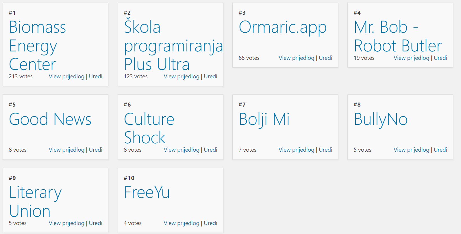 Kome možeš dati glas? Na linku iznad pogledaj svih 10 sjajnih ideja i njihovo video predstavljanje, a zatim odluči kome daješ glas.