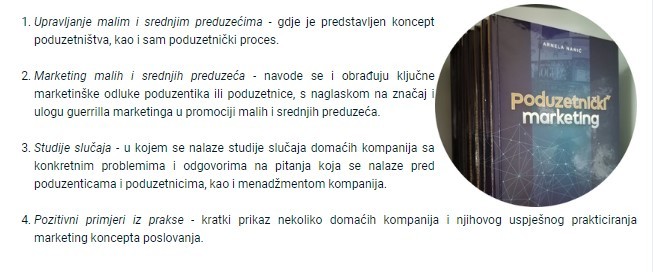 „Moram reći da knjiga obiluje mnoštvom praktičnih primjera, što je i bio smisao pisanja same knjige – da se ponudi ne samo teorija, nego i praktični primjeri koji će, posebno malim poduzetnicima i poduzetnicama, poslužiti da lakše privuku svoje potrošače, ili da eventualno zadrže postojeće“, naglasila je profesorica i autorica knjige, Arnela Nanić.