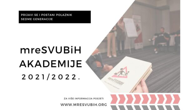 Stoga mreSVUBiH poziva sve zainteresovane, proaktivne mlade ljude iz Bosne i Hercegovine željne učenja i širenja svojih znanja, mlade koji žele razvijati i unaprijeđivati svoje liderske kompetencije i doprinositi razvoju društva jednakih mogućnosti, da se prijave na mreSVUBIH AKADEMIJU.