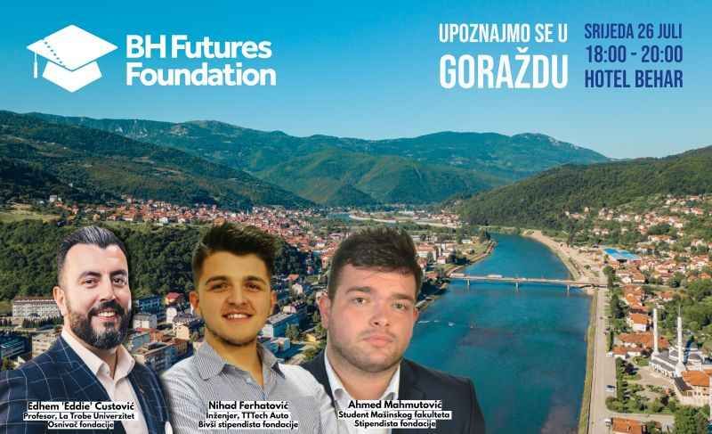 B&H Futures Foundation poziva sve zainteresovane da nam se pridruže na profesionalnom umrežavanja, izgradnji prijateljstva i poznanstava kao i upoznavanja rada fondacije i naših programa stipendiranja. Gdje ❓Hotel Behar, Trg branilaca, Goražde.