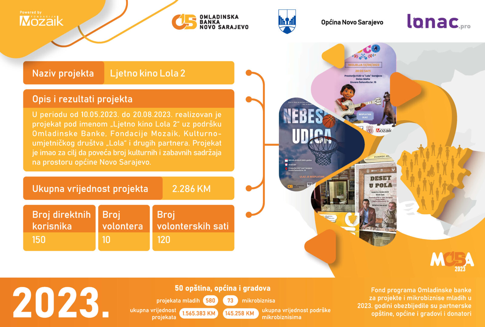 Prilikom realizacije projekata, učestovovalo je 221 volontera, koji su radili 950 sati da bi 2,167 korisnika imali priliku i podršku u zajednici.