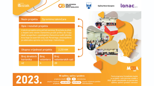 15.2.2024. godine smo zatvorili prvi poziv u ovoj godini za društveno korisne projekte i biznise. Obezbijedili smo skoro milion maraka za podršku mladima, da razviju i realizuju svoje ideje i time unaprijede svoje zajednice. Podsjećamo još jednom na pozive gdje je prijavljeno 679 projekata i 98 biznisa!