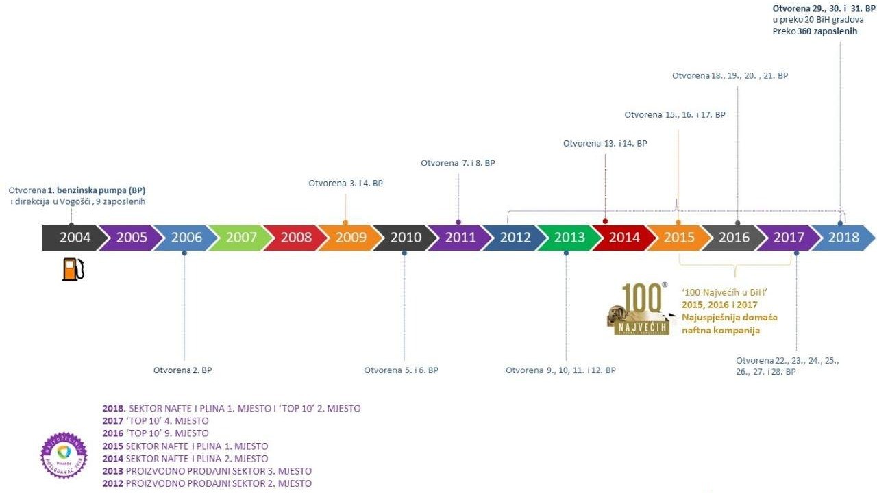 Kompanija Hifa Petrol d.o.o. osnovana je 2005. godine otvaranjem prve benzinske pumpe u Vogošći, gdje se nalazi i sjedište kompanije. U narednim godinama uslijedilo je proširivanje mreže maloprodajnih objekata u više od 37 gradova širom BiH. Trenutno, ova kompanija posjeduje čak 48 maloprodajnih objekata koji izgledom i kvalitetom usluge ne zaostaju za najvećim svjetskim brendovima benzinskih pumpi.