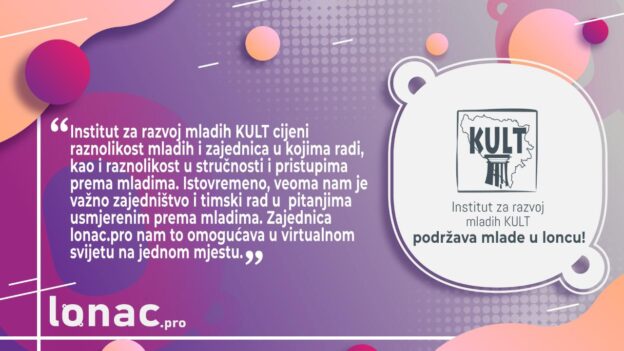 Institut za razvoj mladih KULT cijeni raznolikost mladih i zajednica u kojima radi, ali iznimno cijenimo raznolikost u stručnosti i pristupima prema mladima. Istovremeno, veoma nam je važno zajedništvo i timski rad u pitanjima usmjerenim prema mladima. Zajednica lonac.pro nam to omogućava u virtualnom svijetu na jednom mjestu.
