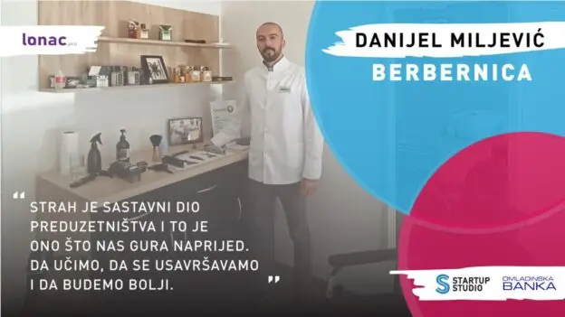 Nakon deset godina učenja, brušenja frizerskog zanata i prikupljanja profesionalnog alata, Danijel je odlučio da je vrijeme da se osamostali i da otvori svoju berbernicu, jednu od onih kakve su bile popularne početkom dvadesetog vijeka. Aplicirao je za sredstva Omladinske banke i sa 1980 KM krenuo u priču. To mu je bilo sasvim dovoljno. Trudi se da ima dobru ponudu – da je kozmetika kvalitetna, da su žileti čisti i to su sitnice kojima dobija i zadržava mušterije.