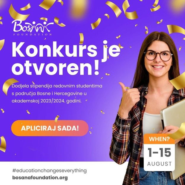Najava konkursa za dodjelu stipendija 1-15. avgust 2024. – Bosana Foundation