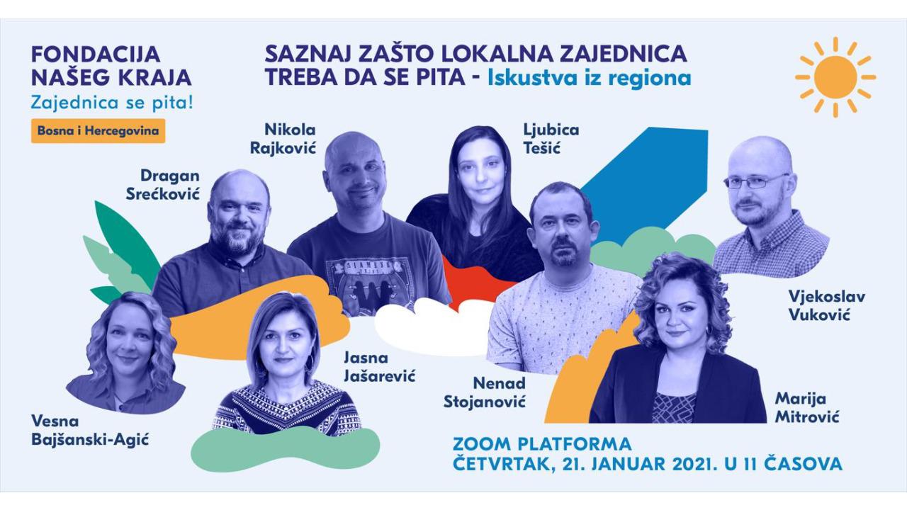 Povodom otvorenog konkursa za program “Fondacija našeg kraja” u Bosni i Hercegovini, pozivamo vas na online sesiju „Saznaj zašto lokalna zajednica treba da se pita – iskustva iz regiona”