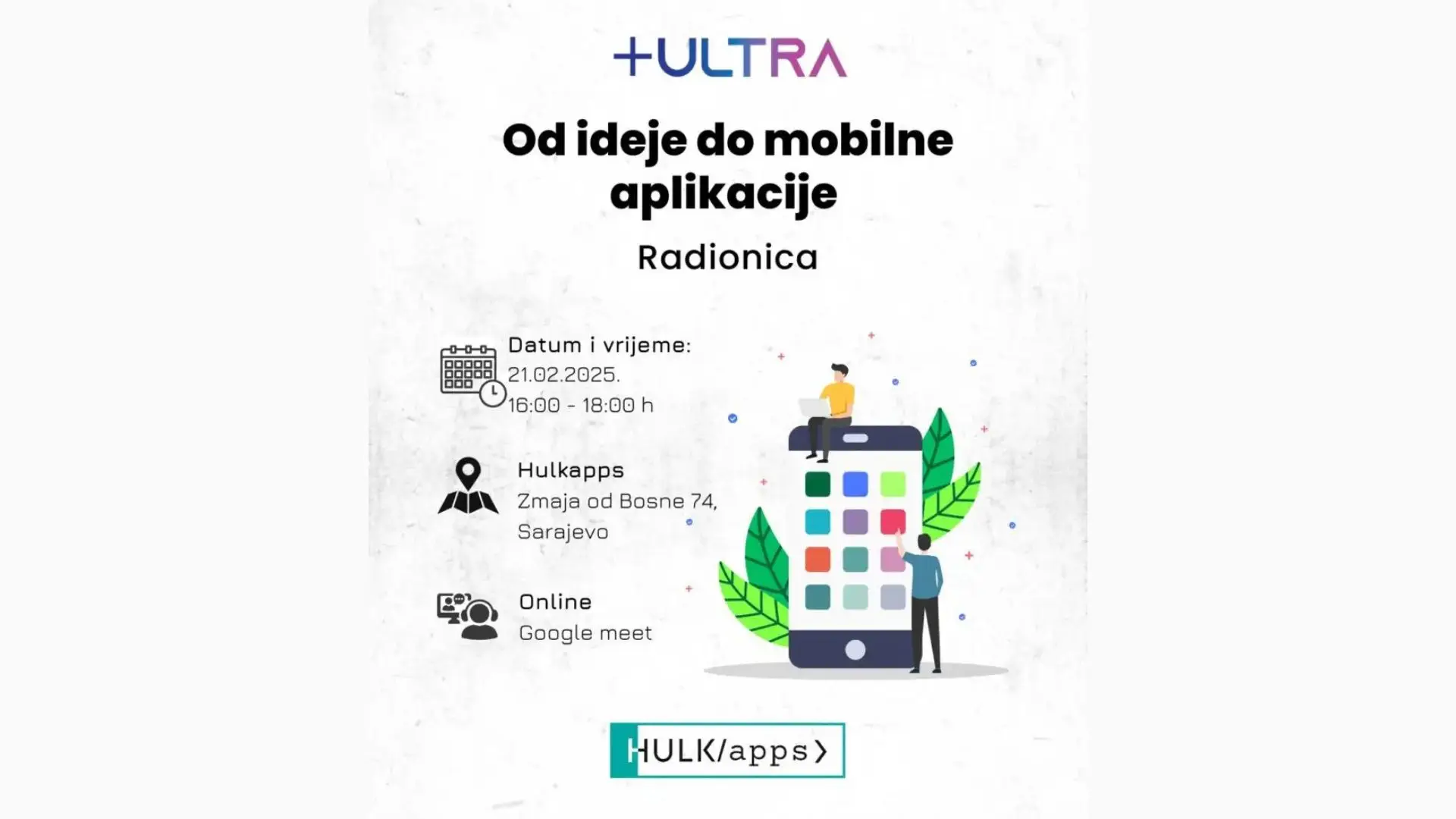 🤔 Imate ideju ili tek želite da je stvorite i da razvijete svoju mobilnu aplikaciju? Pridružite nam se na radionici, koju organizujemo u saradnji sa IT firmom HulkApps, ,,Od ideje do mobilne aplikacije”