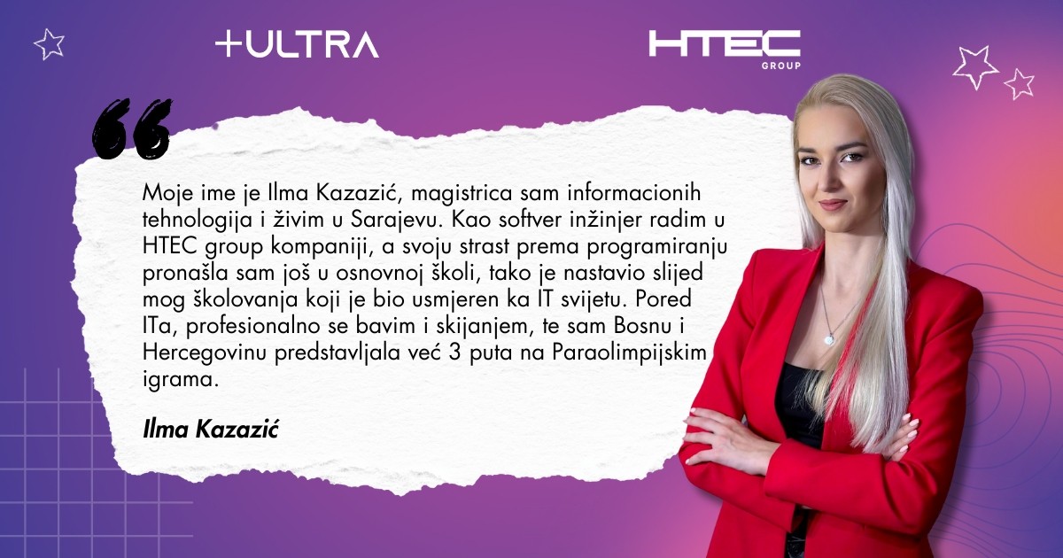 Naša sagovornica za intervju-“Devojke u svijetu informacionih i komunikacionih tehnologija”, je Ilma Kazazić, veoma uspješna mlada devojka iz HTEC-a.